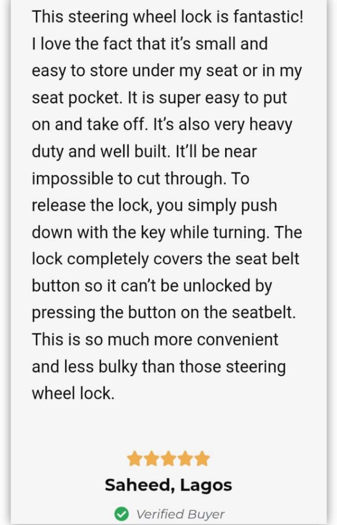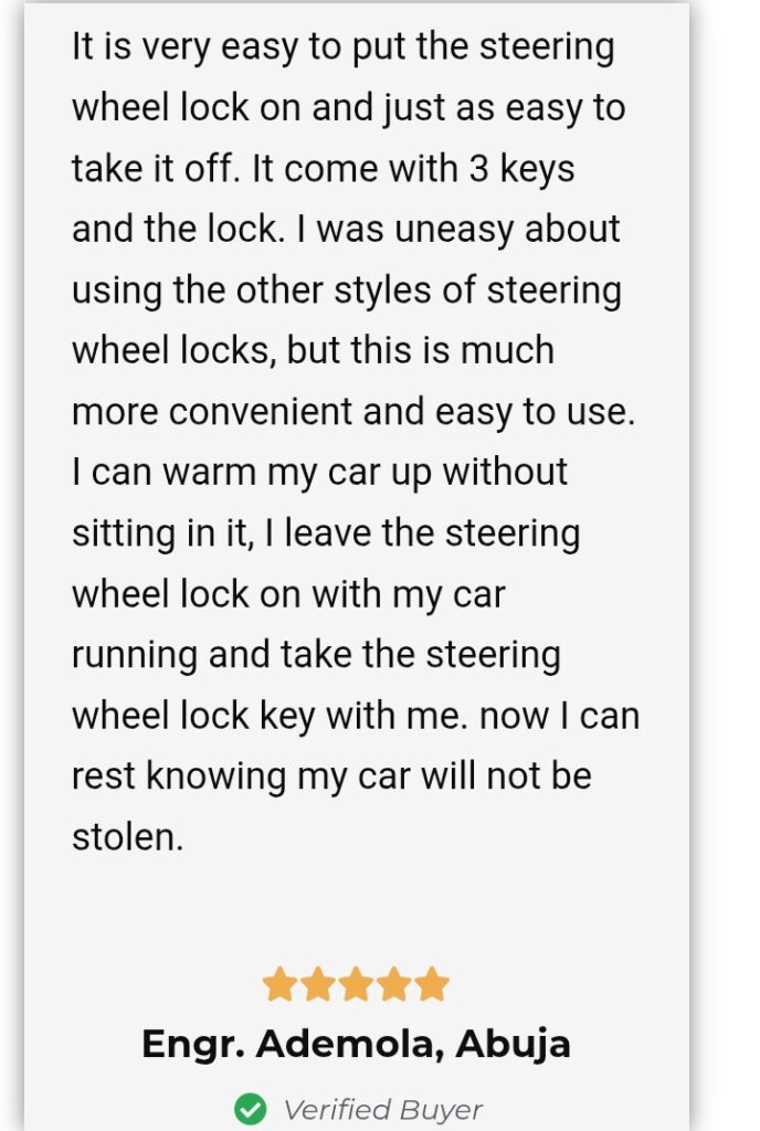 Fits Most Cars: Our lock is designed to fit the majority of cars in Nigeria, so you can rest assured it will provide a snug and reliable fit for your vehicle.